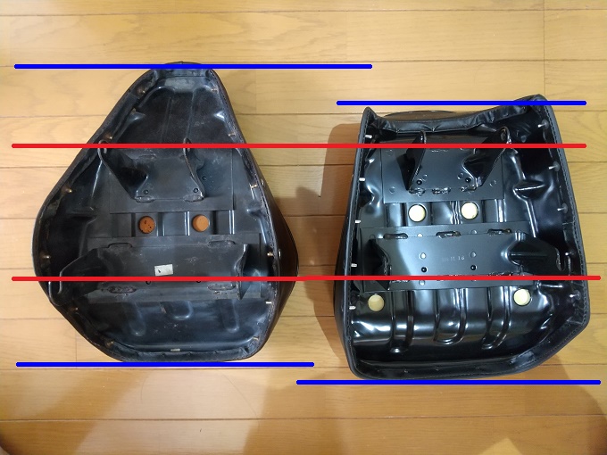 シートは、取付位置で揃えて比較すると、モンキーのシートの方が前方にきます。