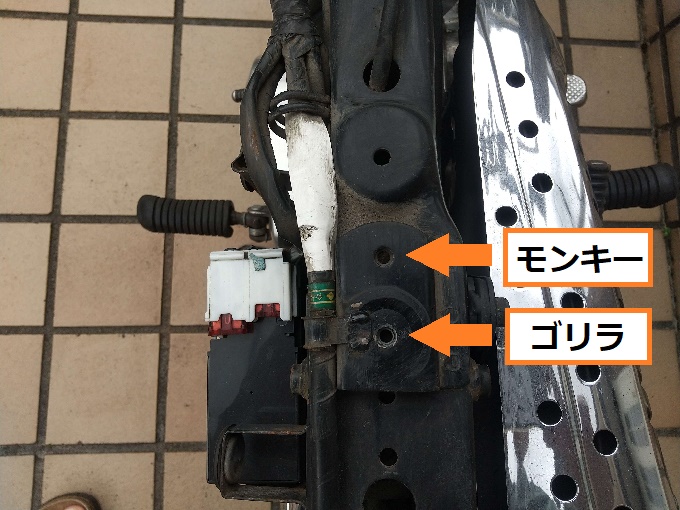 まずタンクですが、ゴリラとモンキーではタンクの取付位置が違うだけで互換性があります。