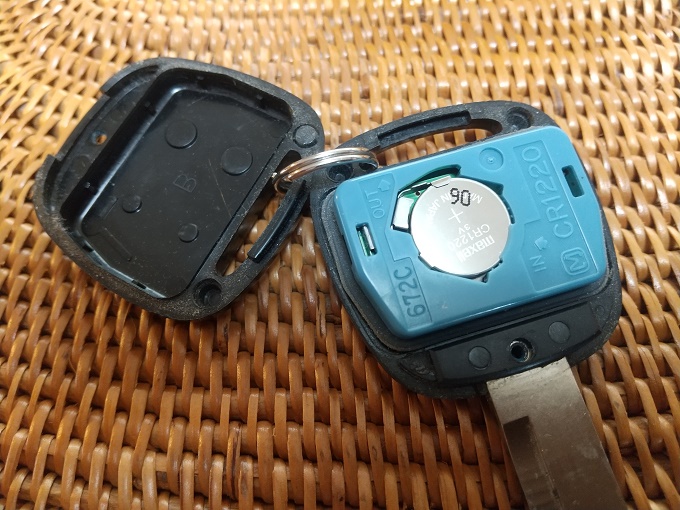 このところの気温の低下とともに効きが悪くなってきたジムニーシエラ君のリモコンキーの電池を交換しました。