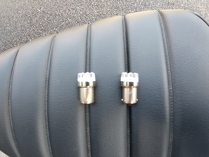 う~ん、まだ他のライト類がウインカーに連動して暗くなってしまっているので、後方もLED球に交換することにしましょう。