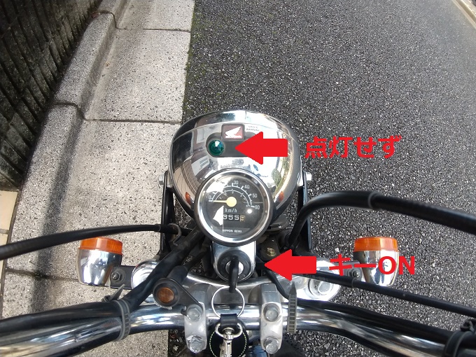 と思いきや、キーONでニュートラルランプが点いていないことに気付きました。