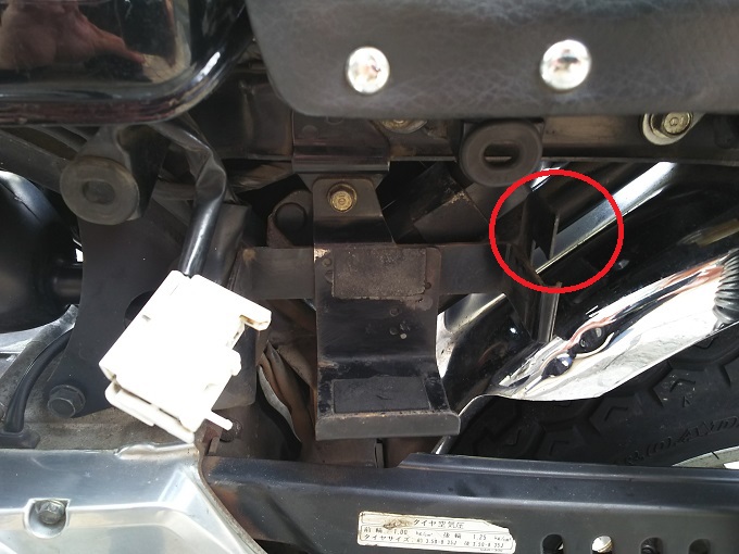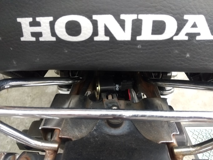 見えづらいですが、ゴリラ君のウインカーリレーはシート下にお住まいのようです。