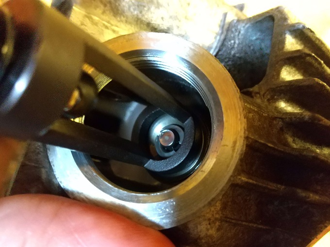 バルブスプリングを専用工具(バルブスプリングコンプレッサー)で縮めて、