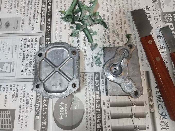 なお、左側のヘッドサイドカバーは、部品交換することにしたのでガスケット剥がしはしていません。