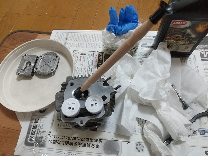 最後にタコ棒と2種類のバルブコンパウンドですり合わせをして、