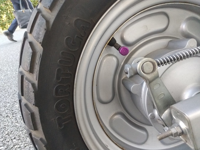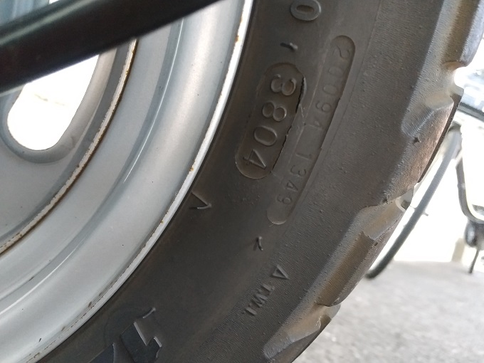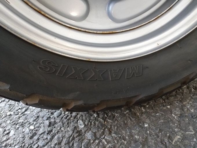 TORTUGAというミニバイク用のデュアルパーパスタイヤで、新車時に装着されているタイヤのままでした。