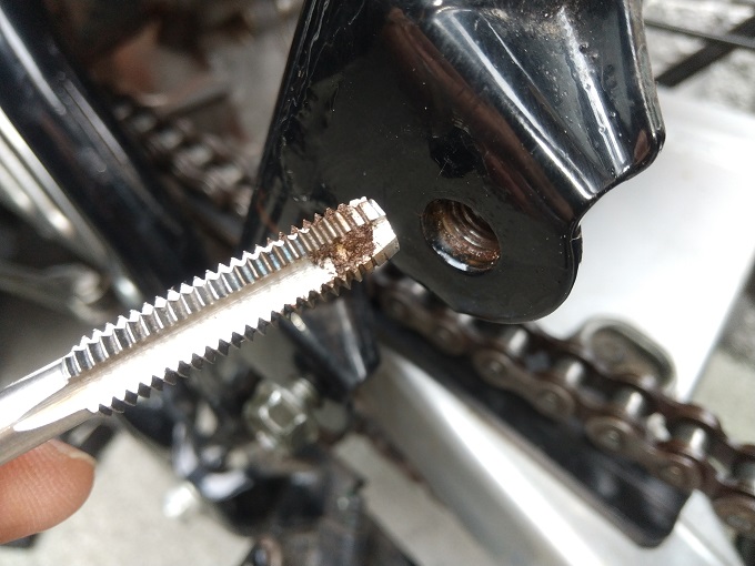 ボルト穴の雌ネジが錆びて崩壊しています。