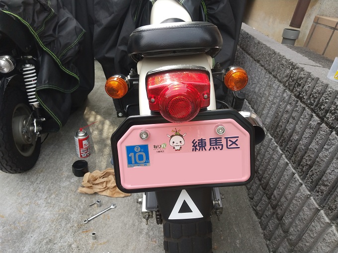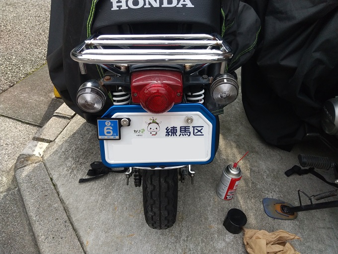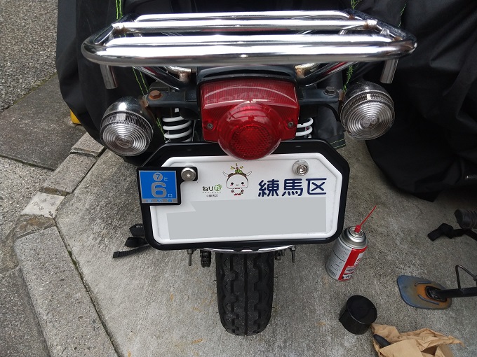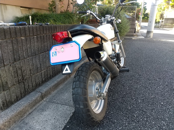 GAG君に使っていた青のDAYTONAアルミナンバープレートホルダーが余っていたので使いまわしたのですが、