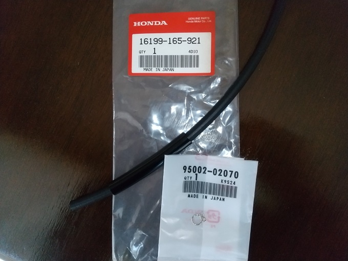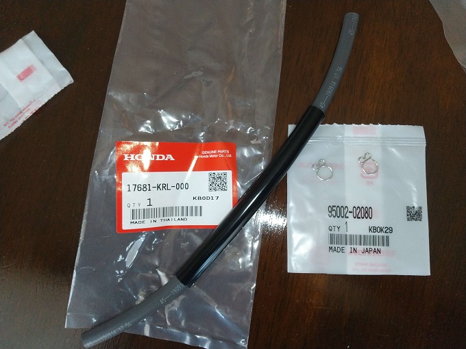 ただ、エイプの純正エアベントチューブは廃番になっているようで、仕方がないので同じく廃番のゴリラ君のストック品を付けることにしました。