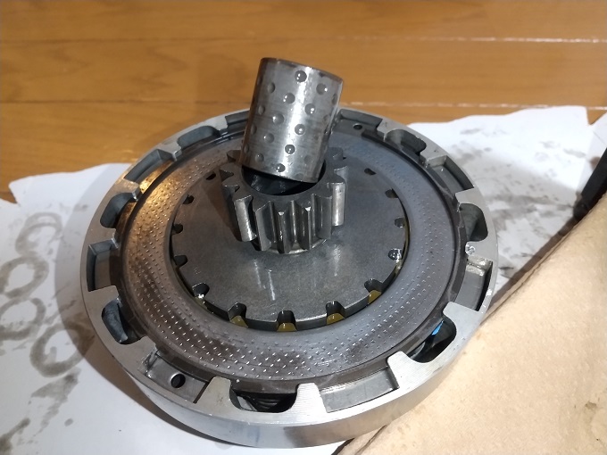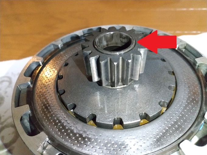 あとはこのアウターを組んでいくだけなので、クラッチアウターをプライマリードライブギアとクラッチセンターガイドをセットした状態でクランクシャフトに差し込んだのですが…