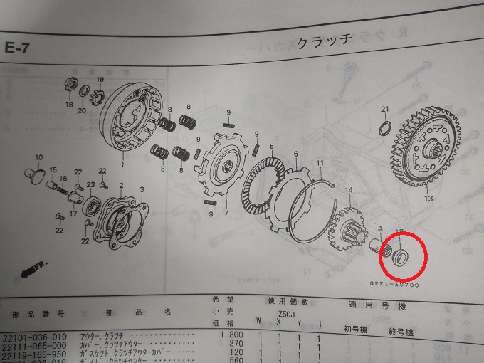 ところで、このエンジンのクラッチセンター出しの失敗事例が数多く出ていますが、プライマリードライブギアをセットした状態で組み戻せば、あまり神経質になる必要がない気がします。