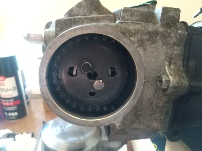 カムチェーンスプロケットを止める2本のボルトのうち1本が純正ではない間に合わせの寸足らずなボルトだったので、