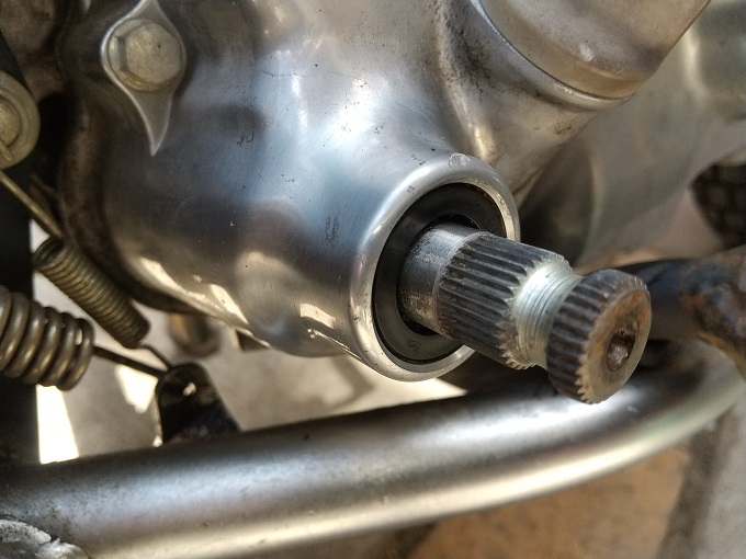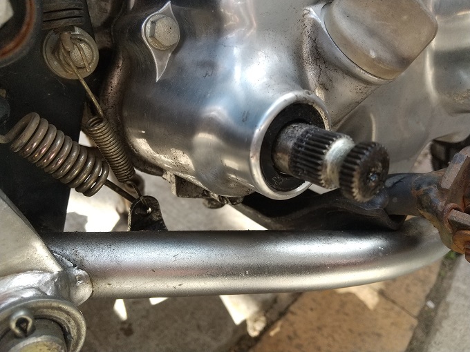 定番のキックシャフトオイルシール のところからオイルが滲んでいるのです。