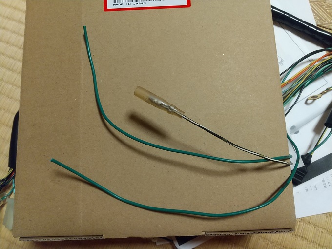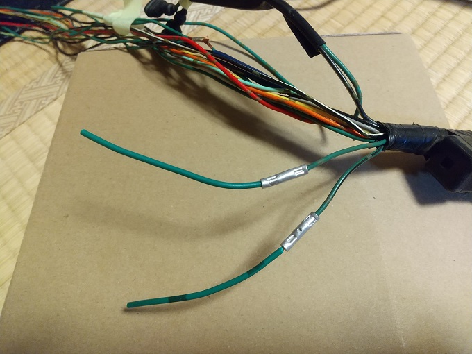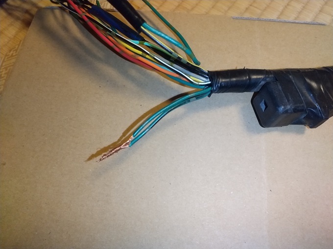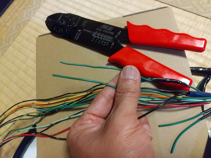 先端は丸型端子を付けるのですが、車体にメインハーネスを取り回してから長さ決めをするので、取り敢えずはこのままです。