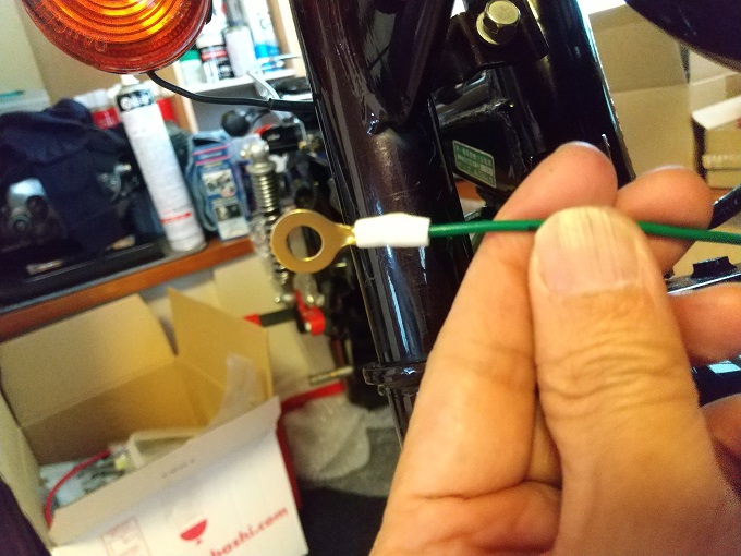 長めにとっておいたアース線の長さ調整、端子加工をして