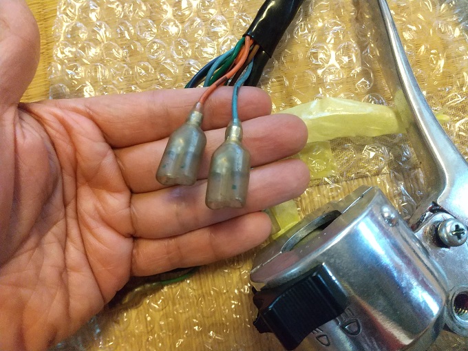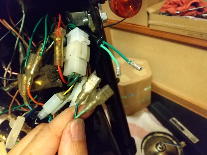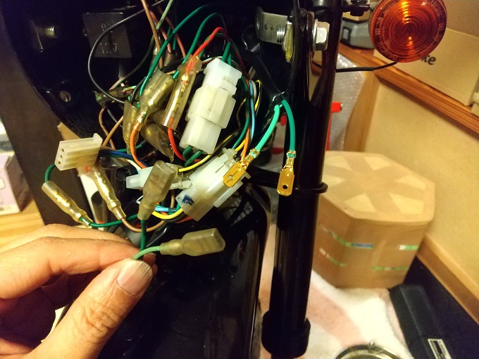 あと、ウインカースイッチからの配線(橙・空)がWギボシ端子の雌になっていて、手持ちのモンキー配線図と異なっていたので、ウインカーアースの取り方が違う車両(ゴリラ?)のスイッチだと思います。