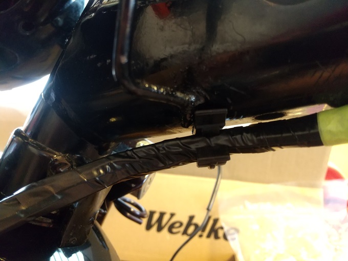 右レバーはブレーキランプのストップスイッチだけなので、配線はとてもシンプルです。
