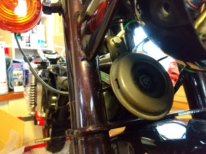 ホーンの取付ステーに繋いでおきます。