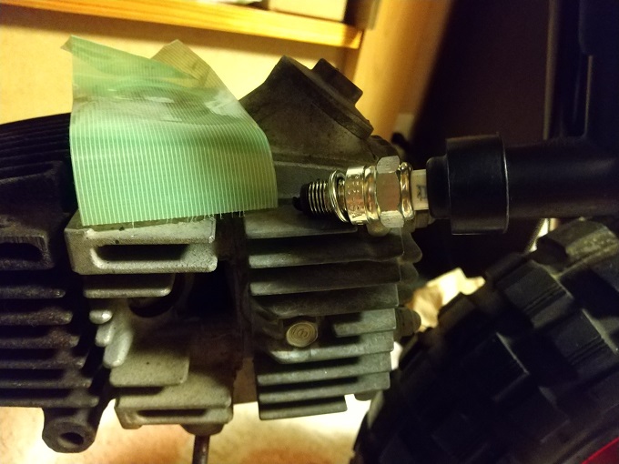 プラグをキャップに付けてシリンダーヘッドに当ててセットします。
