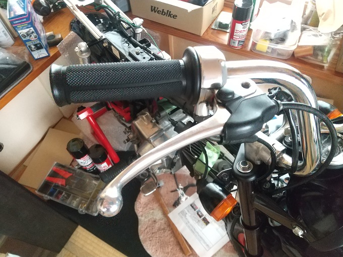 残すは、マフラー・キャブ・タンク・シートあたりを付ければ完成なのですが、ガソリンを扱う前に屋外に出す必要があるので、そろそろ搬出や置場のことも考えないといけませんね。