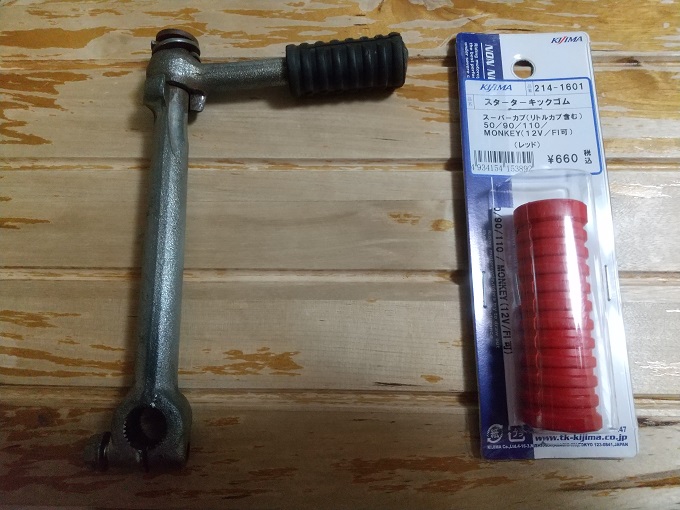 が、なぜかキックペダルゴムが半ズボン状態になっているので、KIJIMA(キジマ)の『スターターキックゴム(レッド)』と入れ替えることにしました。