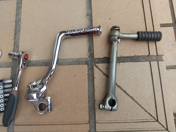 又、バックステップ用よりアームが短く、キックが重いイメージがありますが、回転半径(軸中心からの距離)はバックステップ用と同じ長さの為、エンジン始動は従来品同様、ノーマルに比べ始動性に優れています。