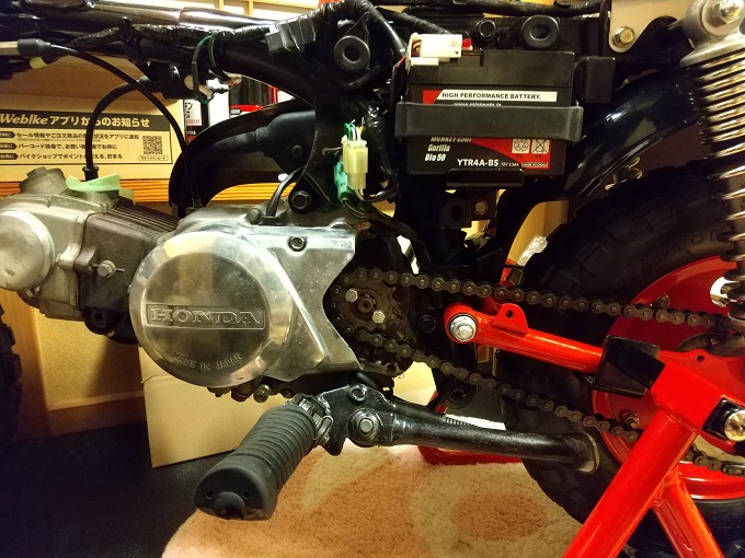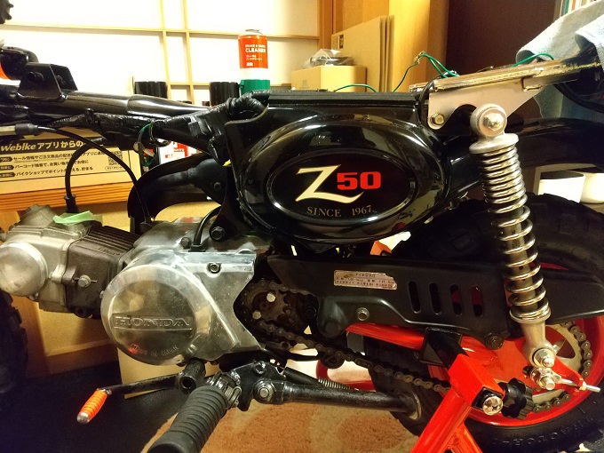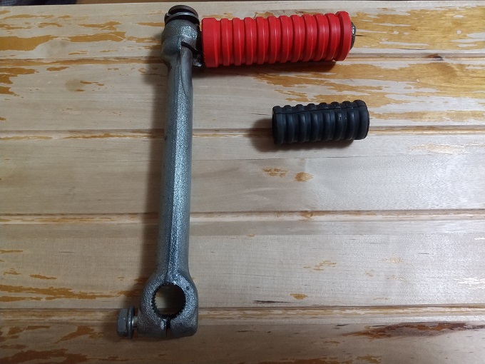 そのままでも良かったのですが、以前に車体右側の作業をした際にキックペダルゴムを『キジマの赤』にしていたので、