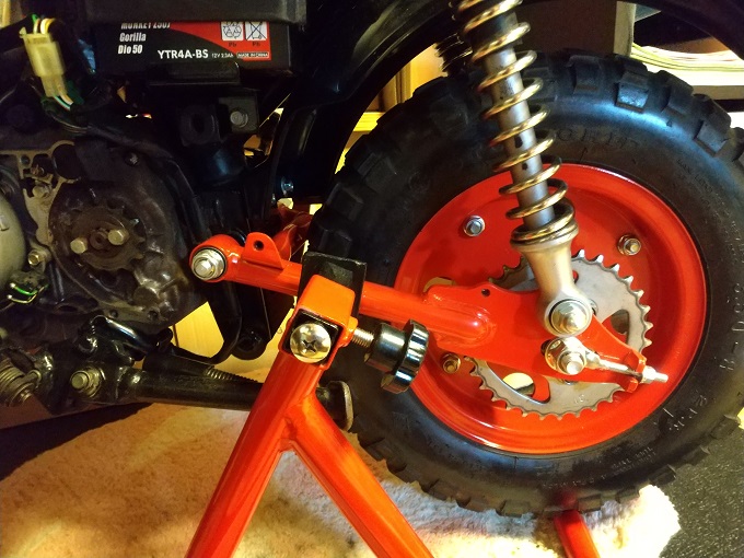 手持ち部品は、ワイドホイール用(Fスプロケをオフセットした車体用)に加工されたモノしか無かったので、仕方なくコレを使います。