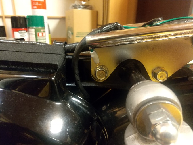 上記の写真は、ウインカーの動作確認をするために取り敢えずシート取付穴でボディアースを取ったもので、コイツは一旦外します。
