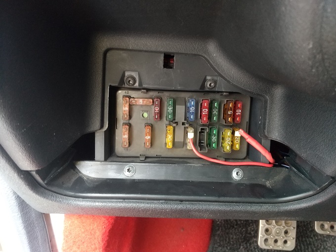 車内のヒューズボックスを開けて