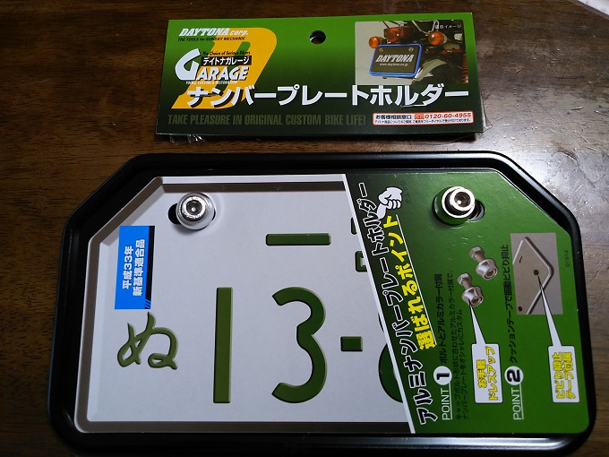 ただ、プレート剥き出し感がしっくりこなかったので、デイトナのナンバーホルダーも併用することにしました。