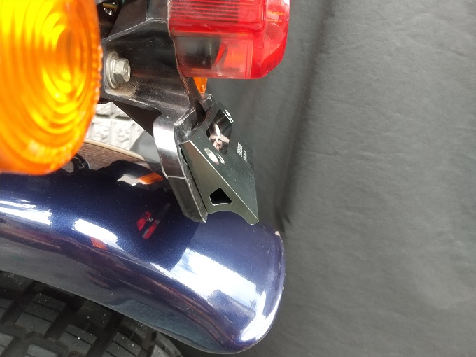 もともとは、純正テールランプ&ロンスイの組み合わせの際に、ナンバープレートとタイヤが干渉するのを防ぐためのパーツのようですが、角度20度(実測)は今回のニーズにピッタリです。