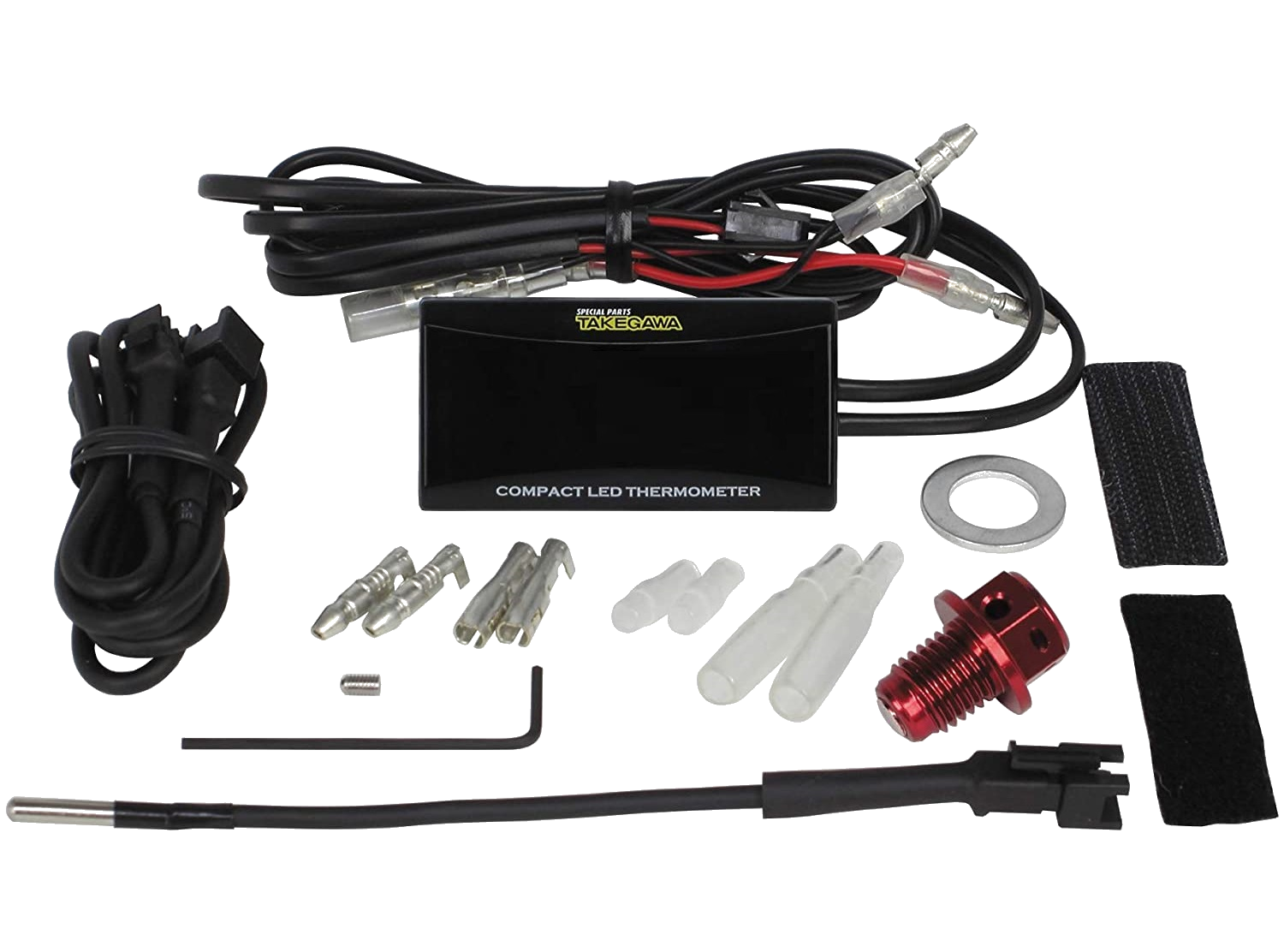 チョイスしたのは、SP武川の『コンパクトLEDサーモメーター』で、油温センサー用の『マグネット付きドレンボルト』が付属する品番『05-07-0007』という商品です。