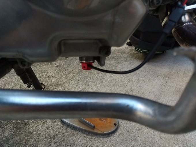 ただ今回は、ハンドルポスト付近に設置できればドレンボルトから取る予定の油温センサーから延長コード無し(標準コード長700mm・延長コード長1,000mm)で届きそうだったので、