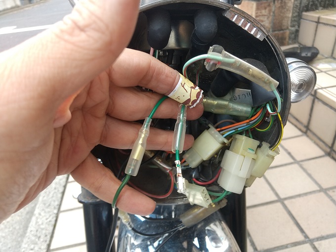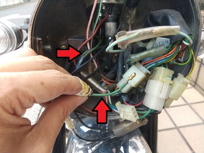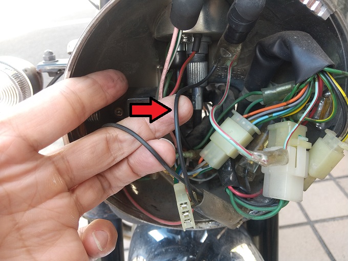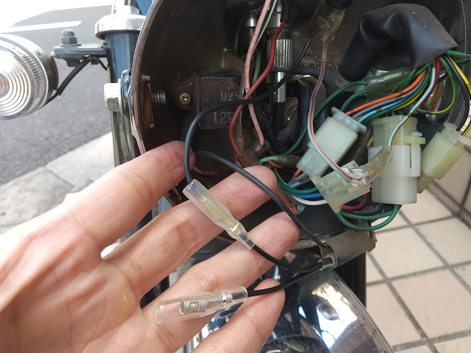 プラス電源は、メインスイッチとニュートラルランプの間の黒色の配線から取ることにします。