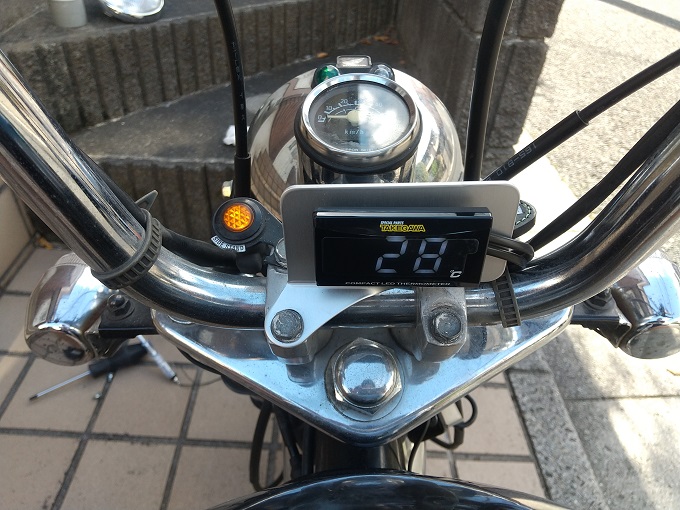 走行中に油温の上昇と下降を確認したいので、小型のデジタルメータを取り付けることに。