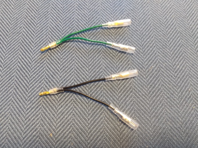 ギボシ端子の金色は純正配線に接続するホンダ用端子、銀色はテンプメーターに接続する通常端子を使っています。