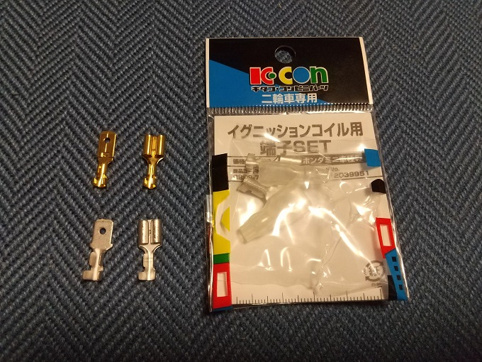 ちなみに、IGコイル用の端子は普通の平型端子と微妙に形状が異なるので、別途購入しました。