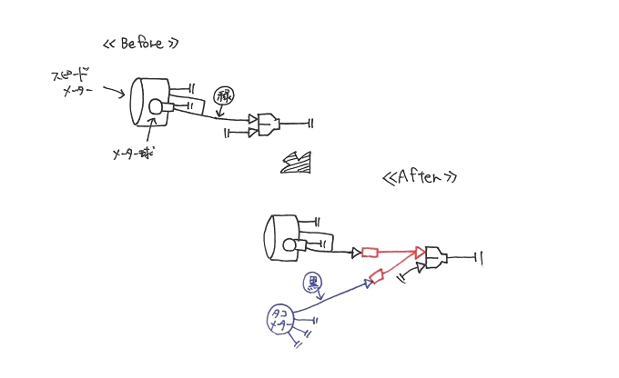 電気式タコメーターの設置場所と配線取り回し