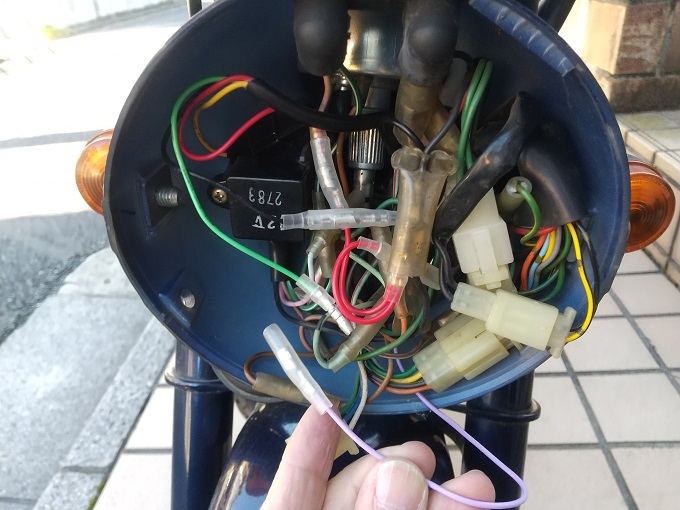 メーターから出ている配線は、全部で4色。