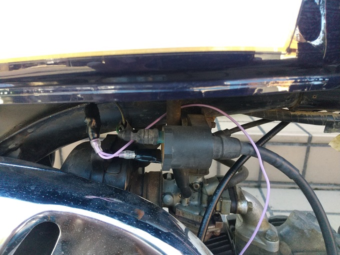 電源が取れたら、あとはCDIとIGコイルの間からパルス信号を取り出します。