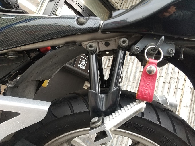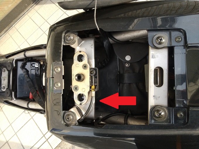 工具なしでカットスイッチのON/OFFをするために、何とかしてシート下からタンデムシート下にカットスイッチを引っ張ってきたい訳です。