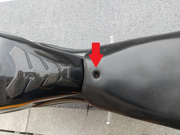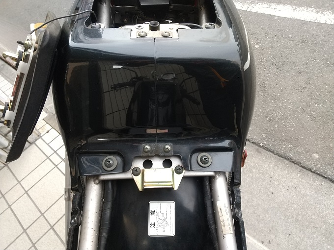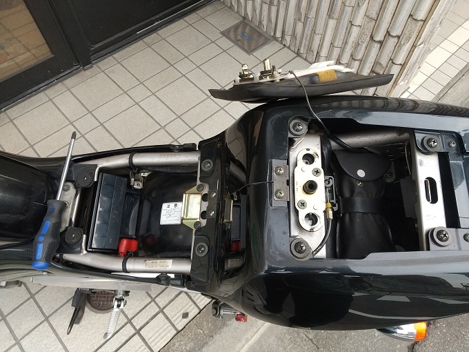 とまぁ愚痴はさておき、早速ボルト止めのシートとメットホルダーのところのキーで外すことができるタンデムシートを外します。