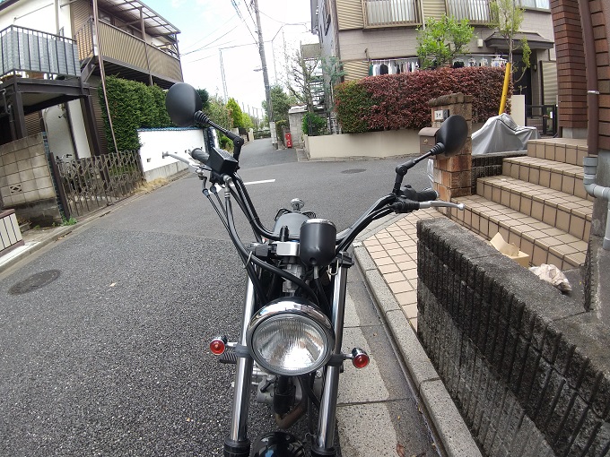 ただ、やっぱり駐輪時や取り回しのことを考えると、もう一回りサイズダウンしたいところなので、純正のトラッカーイメージを崩さない範囲で社外ハンドルに交換することにします。