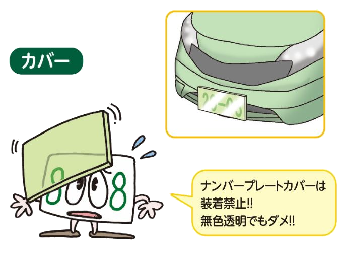 ナンバープレートのすべての文字が判読できないようなフレームはダメ!
