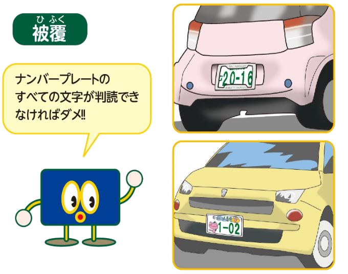 標及びこれに記載された自動車登録番号を見やすいように表示しなければ、運行の用に供してはならない。(車両番号標の表示の義務等)