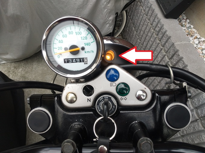 最後の仕上げは、緑色のニュートラルランプの隣で同じく緑に輝くウインカーインジケーターランプのレンズの色をオレンジに変更します。