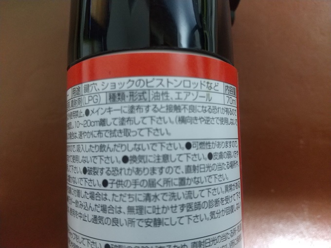 「メインキーに塗布すると接触不良になる恐れが有るので使用しないでください。」
