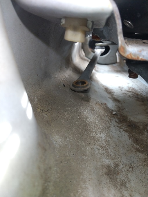 ご覧のとおり、助手席側のリンクがイカれてます。