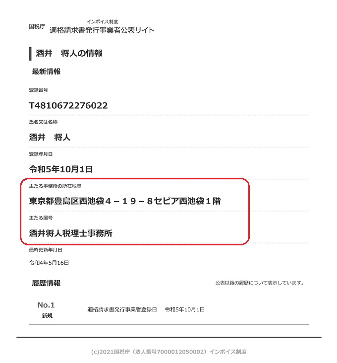なお、国税庁が運営する「適格請求書発行事業者公表サイト」の公表項目は下記のとおりとなっています。